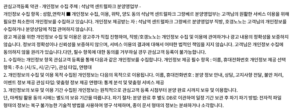 개인정보 수집/이용 동의